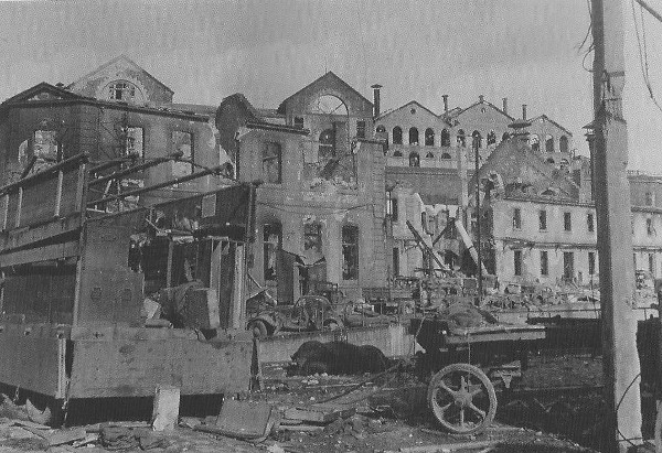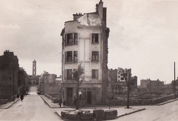 Une rue de Lorient en 1944. Carte postale. Collection particulière. |