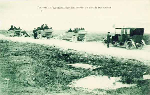 Des forts qui attirent touristes et pèlerins dès l’immédiat après-guerre… Le rétablissement progressif des voies de communication menant à Verdun dans le second semestre 1919, et par conséquent, l’édition la même année du tout premier guide touristique consacré au champ de bataille de Verdun par Michelin, signent l’entrée des forts dans une nouvelle ère. Vaux, Douaumont, Souville, Tavannes et l’ouvrage de Froideterre deviennent rapidement les lieux les plus prisés des touristes, suite à la publication, dans le guide Michelin mentionné, d’un circuit qui n’est pas encore nommé comme tel, mais qui va devenir le « circuit des forts »21. C’est ce dernier qui permet à des générations de visiteurs de découvrir le champ de bataille, désormais placé en « zone rouge »22.