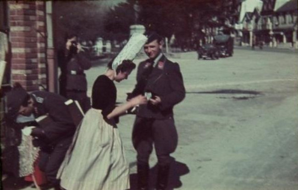 Bien entendu, la saison 1940 n'est pas au niveau de la fréquentation des saisons d'avant-guerre. Durant tout l'été les familles recherchent activement la trace des proches, réfugiés ou prisonniers, dans l'espoir que ces derniers soient sains et saufs. Et pour ceux qui souhaiteraient faire un peu de tourisme, les graves perturbations de transport et le manque de logements disponibles scellent définitivement leurs espoirs. Cette situation ne décourage cependant pas les entrepreneurs du tourisme qui reportent désormais leurs espoirs sur 1941. Le propriétaire de l'hôtel Le Dolmen à Carnac fait partie de ces optimistes. Convaincu que la belle saison verra le retour en nombre des estivants, il force la main du maire le 10 mars pour obtenir la levée de la réquisition de son établissement36. Bien entendu, du côté des occupants, le moral est bien meilleur. Ils goûtent aux plaisirs de l'été en toute sérénité. Moins glamour que Paris et ses « Kabarets », le Morbihan n'en est pas moins un département apprécié des soldats. Le général Wilhelm Fahrmbacher reconnaît après-guerre y avoir « gagné pour toujours l'amour de la Bretagne »37. Être en garnison sur la côte atlantique s'apparente à une véritable récompense. Hormis les bombardements sur Lorient, le département est épargné des faits de guerre. Qui plus est, les Allemands ne semblent pas se plaindre outre mesure du comportement de la population38. Cette douceur de vivre ne déplaît visiblement pas à Karl Dönitz qui, lors de son commandement à Lorient, profite de balades régulières à travers le département39. Les attraits touristiques du Morbihan sont en effet une aubaine pour égayer les permissions. Pour se déplacer, les soldats disposent de guides dans la langue de Goethe adaptés aux différentes régions occupées40. Celui consacré à la Bretagne est publié dès 1940 sous la plume de l'historien d'art E. Göpel, également rédacteur d'un ouvrage similaire pour la Normandie. Le guide, composé de 32 pages, est illustré par A. Conrad afin de faciliter l'agrément du permissionnaire41. Et comme pour toute bonne visite, le « nouveau touriste » peut se procurer des souvenirs, et ce d'autant plus facilement que la surévaluation de Reichsmark offre un pouvoir d'achat important aux occupants42. De manière très anecdotique, ils peuvent ainsi acquérir de très jolis napperons vendus par des bigoudènes … à Quiberon. Une présence surprenante qui s'explique probablement par la présence de leurs maris pêcheurs du Guilvinec pour la saison de la sardine43.
